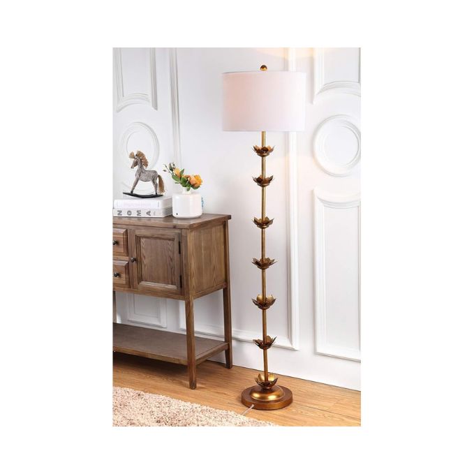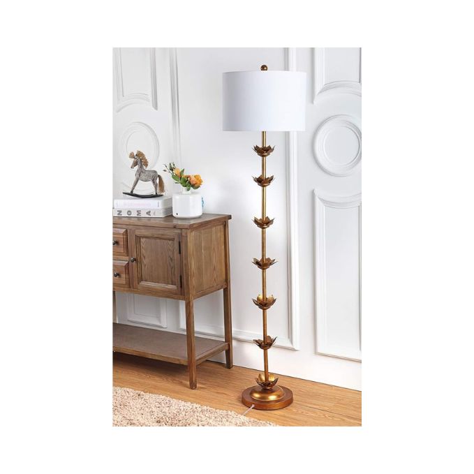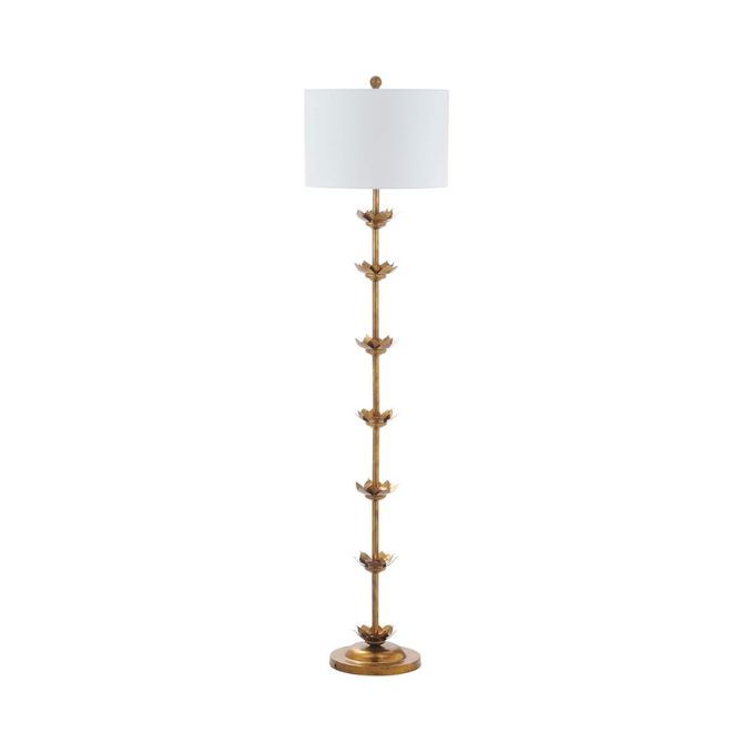 - [STYLISH FUNCTIONAL DESIGN]: Floor lamp features finely sculpted leaves in an antique gold finish and off-white cotton shade