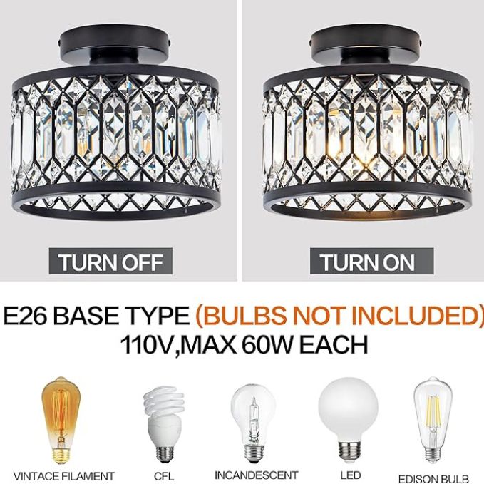 - 【Great Service】This hall lights ceiling mount is fully assembled, just fix the metal canopy with the mounting screws and connect the wires. Please turn off the power before installing the modern crystal chandelier and read the instructions carefully. Your satisfaction is our first priority. If you have any problem of this semi flush ceiling light, please feel free to contact us, and we will give you a satisfactory answer within 24 hours.