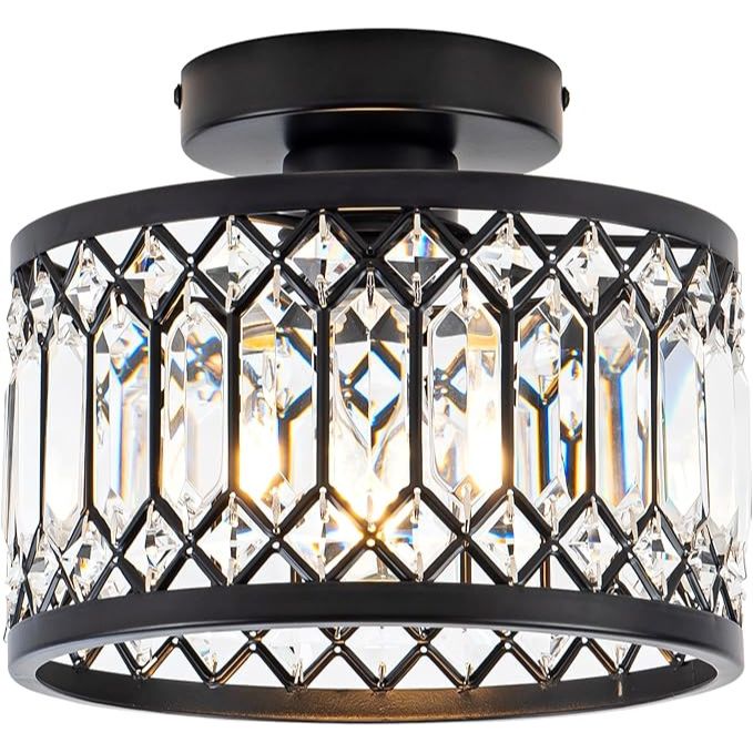 - 【Crystal Flush Mount ceiing light Design】This Modern Flush mount ceiling light features Black frame with crystal shade.The round metal construction and clear crystal decoration make this modern crystal chandelier simple and luxurious yet elegant,while also reflecting the colorful light around the room in a clever way. Creating a comfortable and elegant atmosphere in your home.