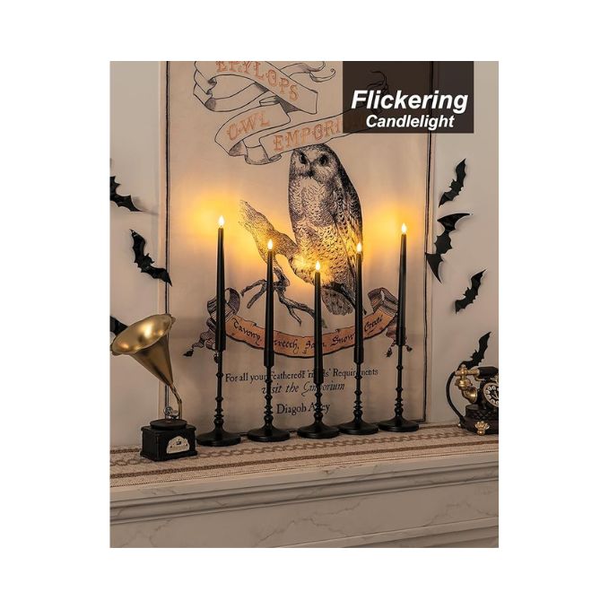 • Safe and Elegant: our led taper candles are made of quality matte texture black plastic, more like wax, and not easily broken. No matter using these flameless candlesticks for Halloween decorations, daily ornament, or magic scene props, they could show a well-designed appearance whether viewed from a distance or close up.