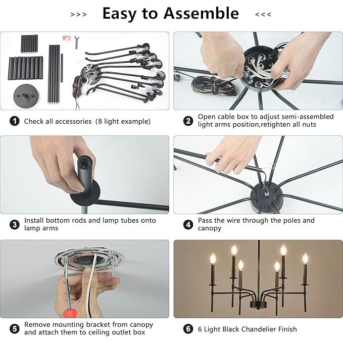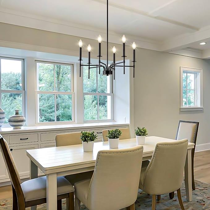 - Dimmable Chandelier: With 6pcs E12 candlestick holders(compatiable with incandescent, LED, CFL, and halogen E12 bulbs) and 10% to 100% dimming capability (Bulbs and dimmer are not included), this black modern farmhouse chandelier allows you to create the lighting ambiance for every moment
