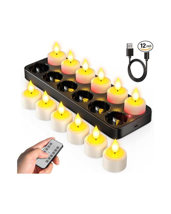 - RECHARGEABLE CANDLES: These LED tea lights candles are Rechargeable and Eliminate the hassle of changing batteries or constantly buying replacement, which can continuously work for 40-50 Hours after 2 hours quick charging, No Extra Battery Needed and saves a lot [Patent NO.: US D1,037,500 S]